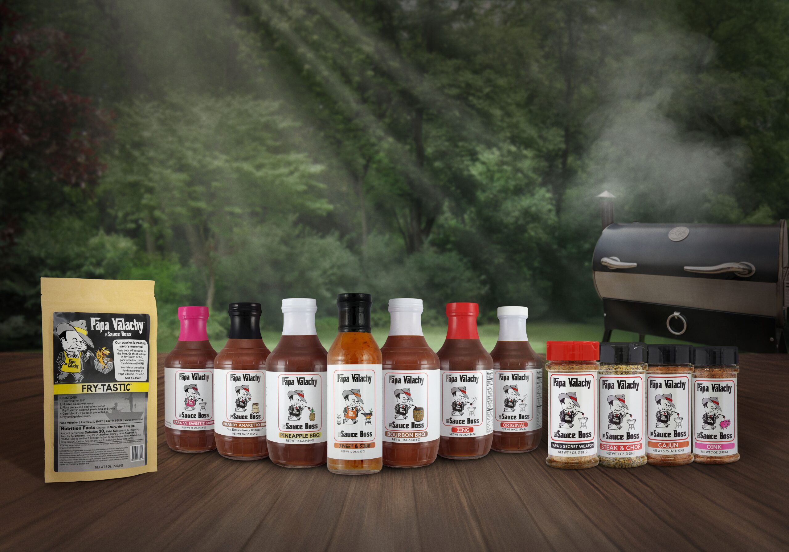 A chance encounter with the best BBQ sauce he’d ever tasted led Steve Valenta, Papa Valachy’s founder, to create some of the most amazing sauces on the market. Over seven years ago, Steve was on a fishing trip in northern Minnesota and stopped by a restaurant out in the boondocks. That night, BBQ chicken was on special and it was the most incredible sauce Steve had ever tasted. After convincing the owner to sell him the recipe, Steve began tweaking and perfecting the recipe while carefully taking in customer feedback. The result? A complete line of distinct flavors that are hailed by pit masters and competition BBQ professionals.